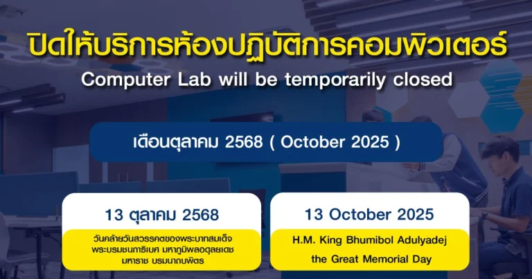 ข่าวประชาสัมพันธ์ ขอปิดการให้บริการห้องปฏิบัติการคอมพิวเตอร์ทุกห้อง ในเดือน ตุลาคม 256819/09/202519/09/2025